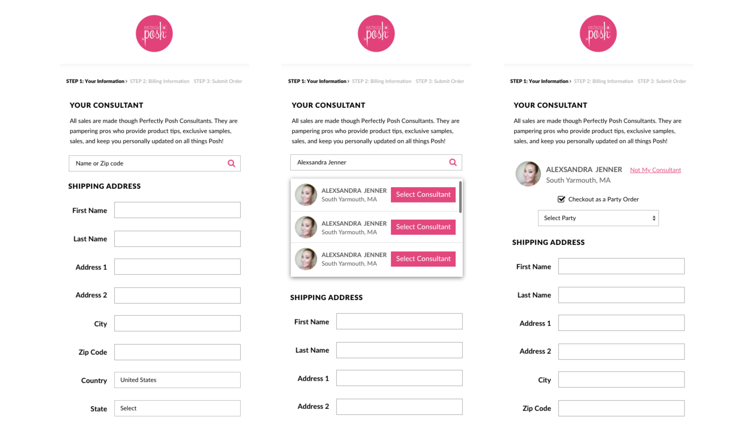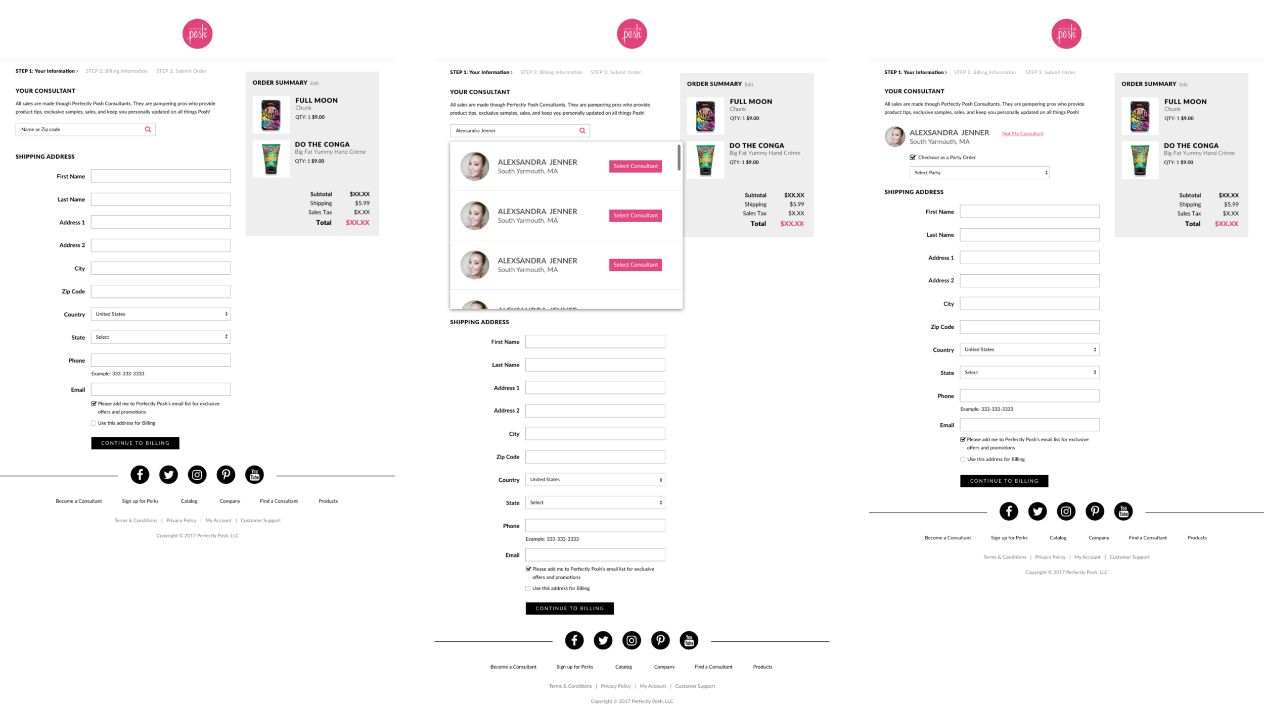 As a direct sales company, Perfectly Posh has a unique cart and checkout flow which requires users to select a Consultant in order to checkout. Extensive research, multiple iterations, prototyping, and user testing was implemented to bring the new cart experience to life.