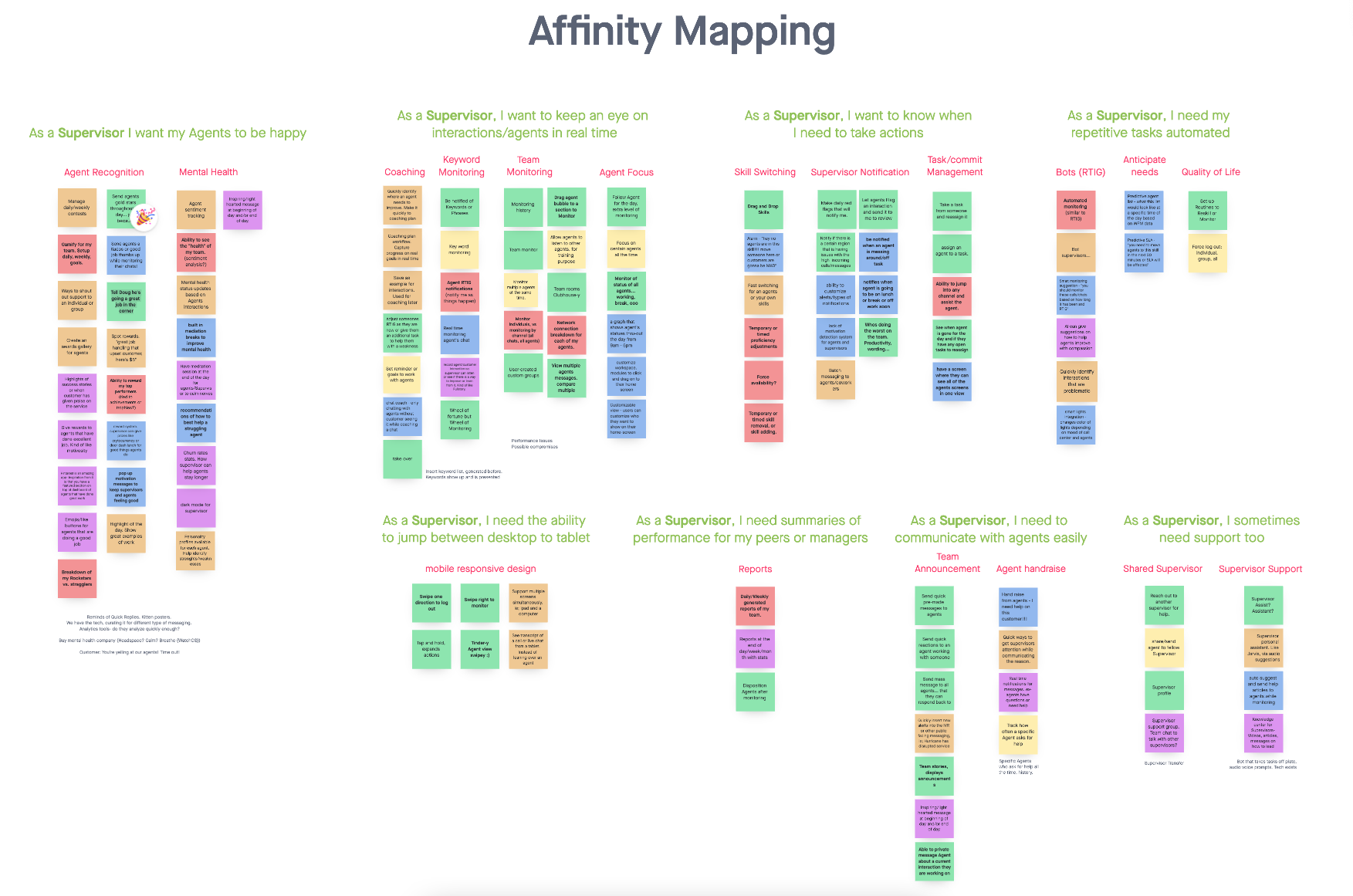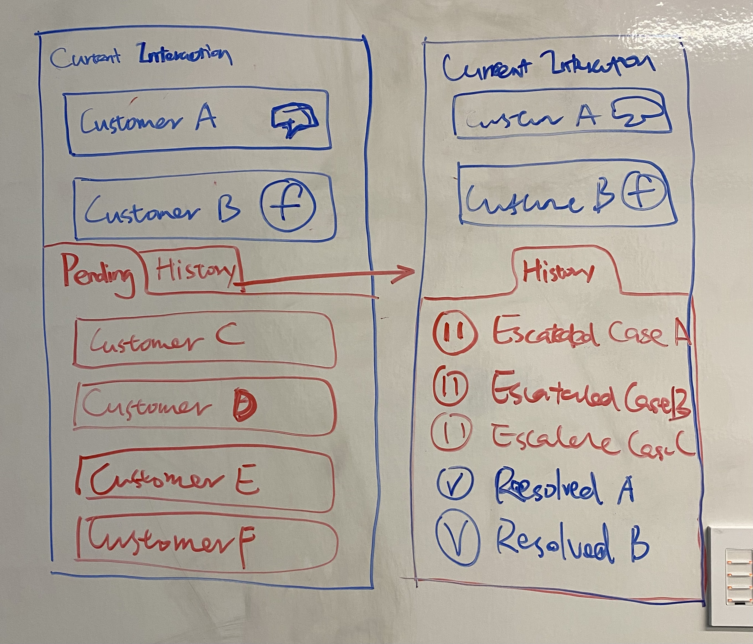 In the early discovery phase, my team and I mapped the full day of both agents and their supervisors. Every phase, every handoff, every communication need between roles. This insight drove the design of the notification and messaging system, letting agents reach out for help or offer assistance without losing focus on active interactions.