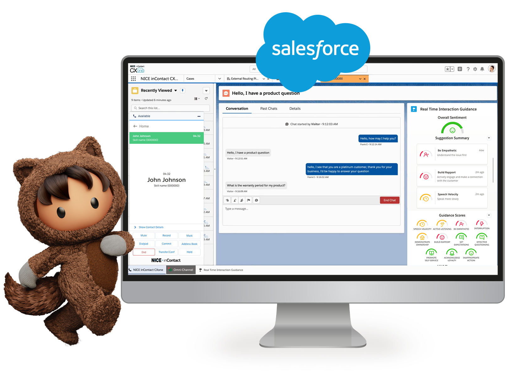 Alongside CXone Agent, I led the design of Real-Time Interaction Guidance. It is an AI-powered tool that surfaces live coaching tips, sentiment signals, and next-best-action prompts during active calls. The core challenge was determining what information matters in the moment, when it should appear, and how it should be presented so it supports rather than disrupts agent focus.